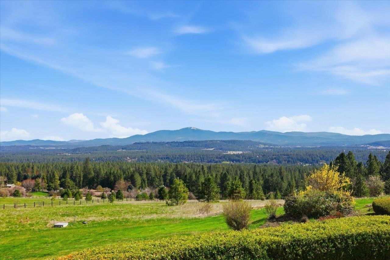 One of Spokanes most spectacular view properties!!! Amazing 2-Story home located in desirable Half Moon Ranch! 10 acres. Mead Schools. Only 10 minutes to Spokane. Country living at its best! Wrap around front porch and three dormer style windows on second story add lots of country charm. Soaring ceiling and open staircase in formal entry will greet you. Dream kitchen boasts of natural maple cabinetry, gorgeous granite countertops, SS appliances, center island, and hardwood floors. Kitchen opens to dining area with view. Great room has massive stone gas fireplace, cathedral ceiling, bay of windows and door to patio. Fabulous floor plan featuring spacious main floor primary bedroom suite. Primary bath has double vanities, jetted tub and shower. Second story has 3 large bedrooms and 2 baths. Full finished daylight basement has 5th bed or office, bath, family room, rec rooms, and slider to backyard. One owner home and first time offered for sale. Incredible views from nearly every window!! Seller/listing agent.