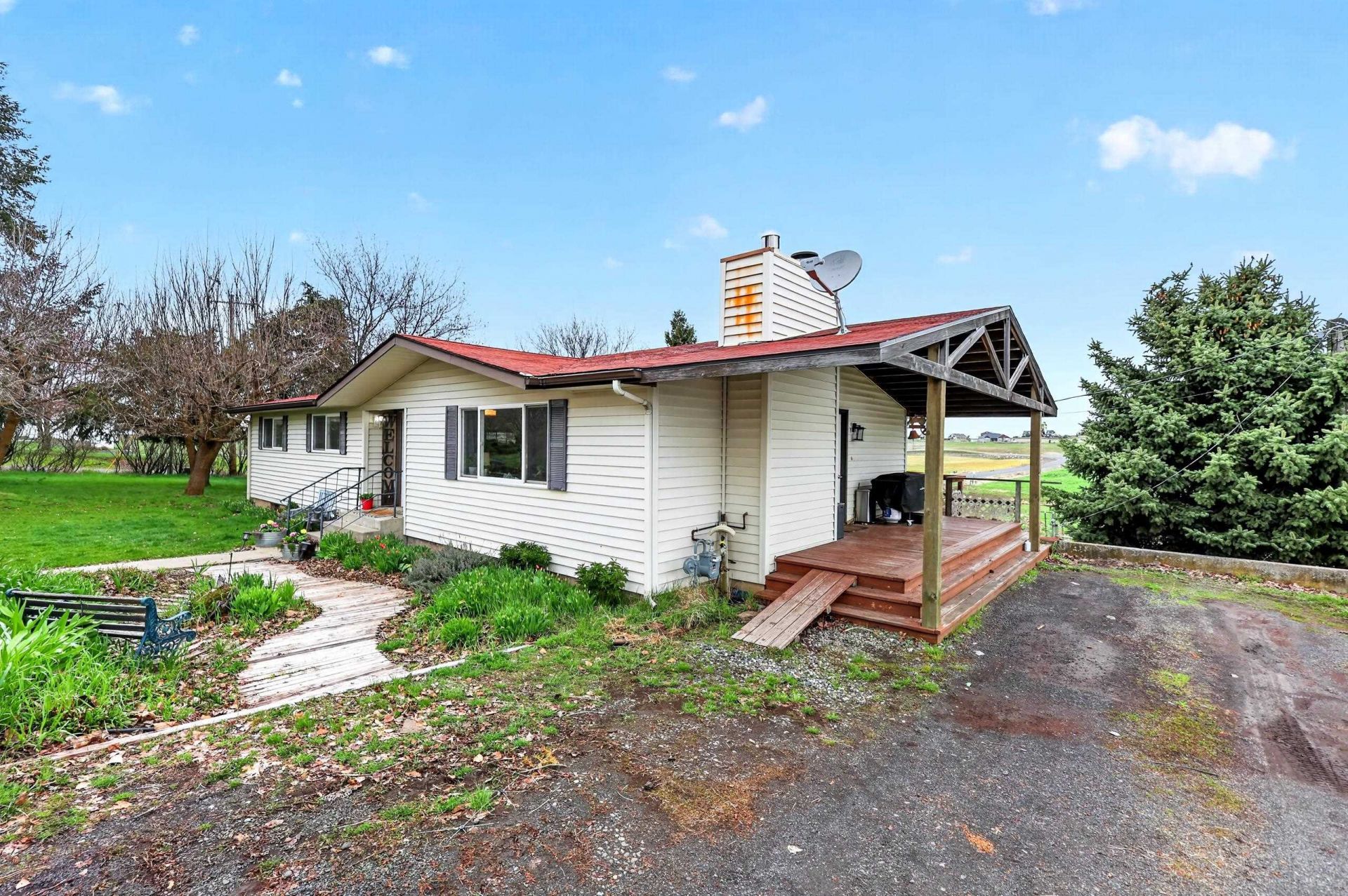 Country living on 17 rolling acres at the edge of Davenport?this 5 bed, 2.5 bath, 3024 sq ft daylight rancher blends updated comfort with a true hobby farm lifestyle. Remodeled baths, updated kitchen and living area, new gas fireplace, and a pellet stove heating the lower level. Rear deck overlooks your ground with sweeping territorial views and sunset skies. Lush pasture, cross-fenced and ready for horses, cattle, or a small farm setup, with year-round Cottonwood Creek winding through the property. Barn, machine shed, detached 2-car garage, 30x40 shop, and chicken coop create a functional homestead for animals, projects, and self-sufficient living. Paved access, fiber internet, well and septic. Rare mix of usable land and in-town convenience?right at the city limits.
