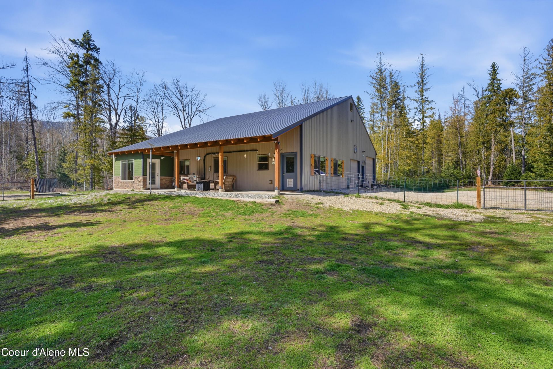 Discover the perfect North Idaho shophouse...ideal for a homestead, hobbyist, or anyone needing extra indoor parking and workspace. This unique property features 2 spacious master ensuites, dedicated office space, and an open-concept kitchen and living area. Enjoy seamless indoor-outdoor living with access to a tongue & groove open beam patio from both the kitchen and primary suite perfect for entertaining or relaxing. The oversized attached shop/garage is fully insulated with 3 roll-up doors(with openers), 2 man doors, and a drive-thru bay...ideal for projects, storage, or equipment. The flat, treed acreage offers privacy while maintaining a park-like setting, plus a fenced yard for pets or play. Conveniently located with easy highway access between Sandpoint and Bonners Ferry, this versatile property blends comfort, functionality, and rural charm. An amazing setting to call home!
