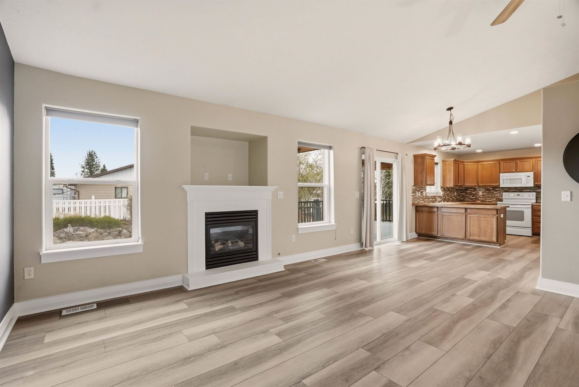 Situated on a desirable corner lot in the Mead School District, this 4-bedroom, 2-bath home offers the perfect blend of comfort, space, and functionality. Inside, youll find updated flooring throughout, with brand-new carpet just installed in several bedrooms?making it truly move-in ready. The spacious primary suite is a standout, featuring a large walk-in closet and dual sinks for added convenience. Downstairs, a walk-out basement provides additional living flexibility with room to add another bathroom. Step outside to an upgraded patio designed for year-round enjoyment, complete with Trex decking, a vaulted tongue-and-groove cover, and built-in TV hookups?perfect for hosting game days or summer evenings. Rounding out the home is a 2-car garage with an attached workshop room, offering plenty of space for hobbies, storage, or projects. This home truly checks all the boxes?dont miss your chance to make it yours.